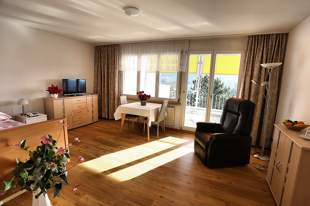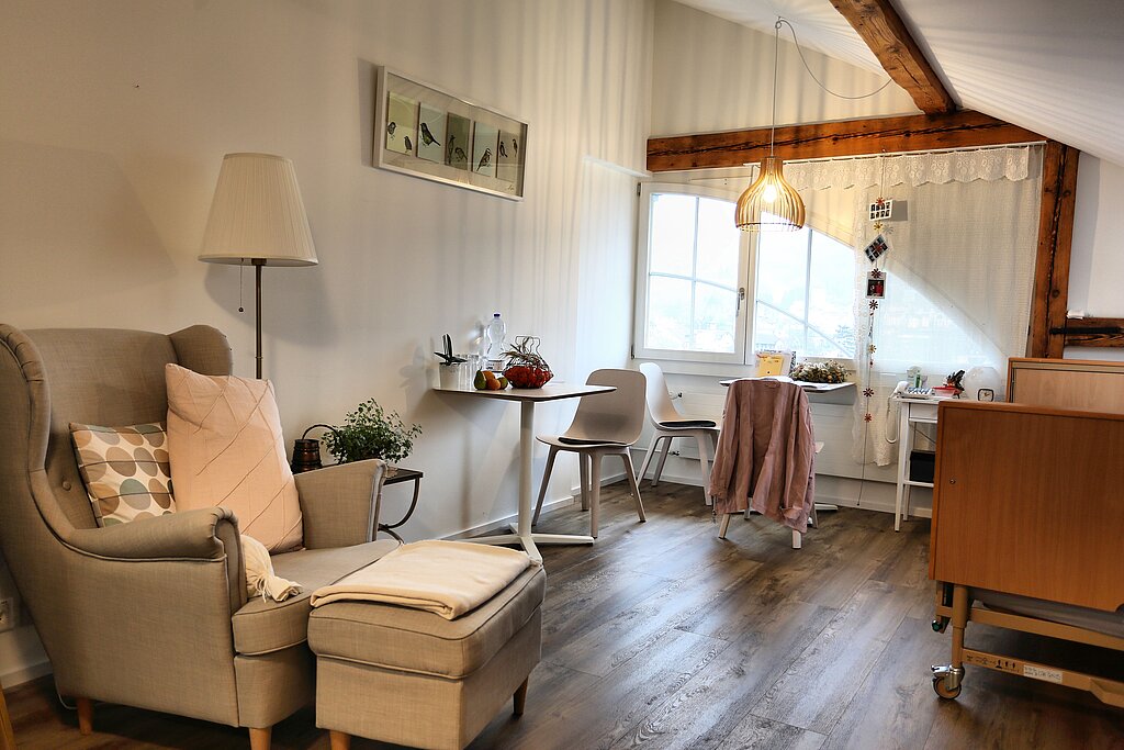 Unsere Zimmer haben die unterschiedlichsten Grundrisse und Grössen. Jeder Interessierte findet bestimmt ein neues zu Hause, dass seinen Vorstellungen und Wünschen entsprechen. Für Lebensgemeinschaften stehen einige Zwei-Zimmer-Appartements zur Verfügung. Die Pensionärinnen und Pensionäre richten ihr Zimmer mit ihren eigenen Möbeln ein, wie es ihnen gefällt und sie sich wohlfühlen. Persönliche Bilder und Fotos dürfen ebenfalls an die Wand gehängt werden und verstärken so die Vertrautheit von seinem eigenen, kleinen Reich. Das alles macht das Zimmer zu einem Rückzugsort, indem die Pensionärin oder der Pensionär seine ungestörte Privatsphäre hat.